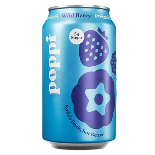 Poppi Wild Berry je funkční limonáda s výraznou chutí směsi lesního ovoce – jahody, borůvky a maliny v jednom. Obsahuje jablečný ocet a prebiotika, které podporují zdravé trávení, a má jen přibližně 20 kalorií.